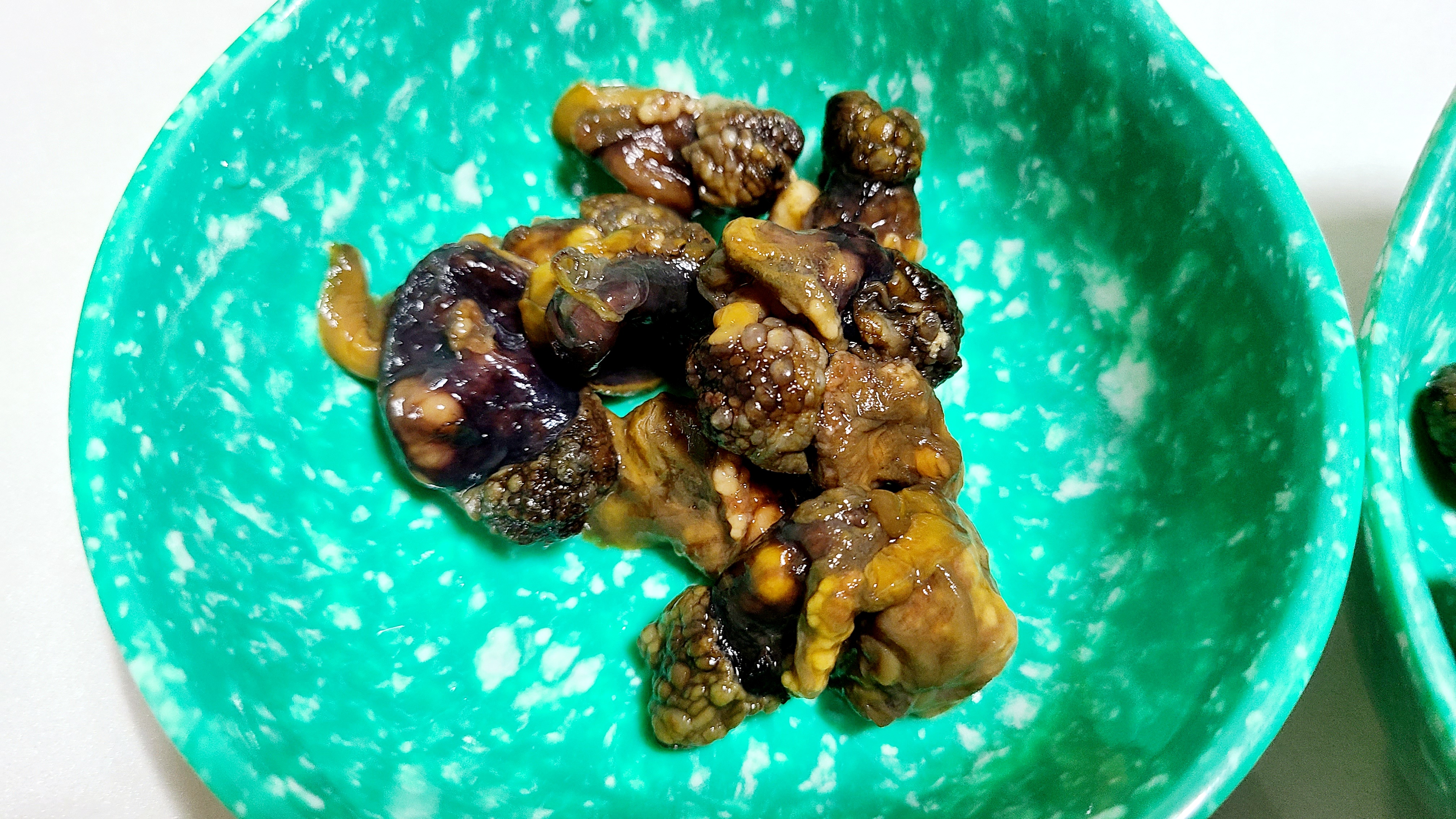 바다에서 나는 더덕. 작은 멍게라 불리는 미더덕. 이걸 회로도 먹을 수 있다니.. 처음 알게 되었습니다. 먹기 전에 영상에서도 그렇게, 그냥 상상을 해봐도 멍게와 비슷한 식감과 맛을 내지 않을까? 생각되었습니다.